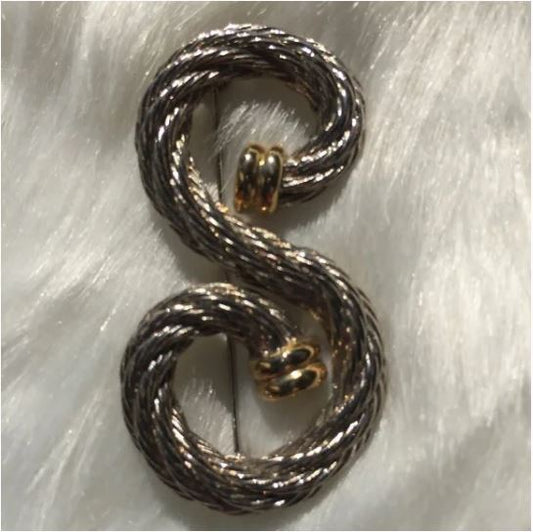 "S” Design Metal Braided Silver Plated Brooch Pin