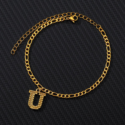 Large Initial Letter Anklets For Women Stainless Steel Letter A-Z Anklet Bracelet Foot Beach Summer Jewelry Gift bijoux Femme
