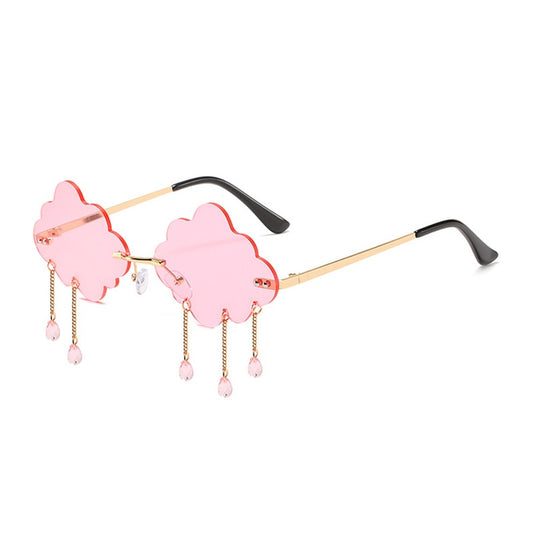 SHAUNA Unique Rimless Cloud Sunglasses Women Fashion Chain Tassel Sun Glasses UV400