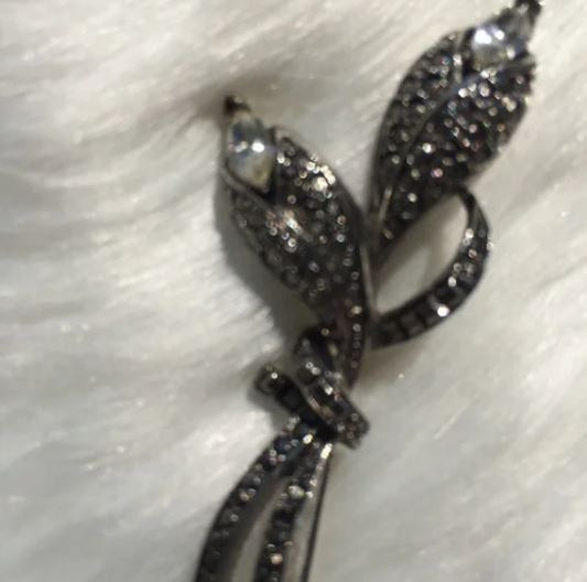 Silver Tulip Flower Design with Crsytal Rhinestone. Silver plated Brooch