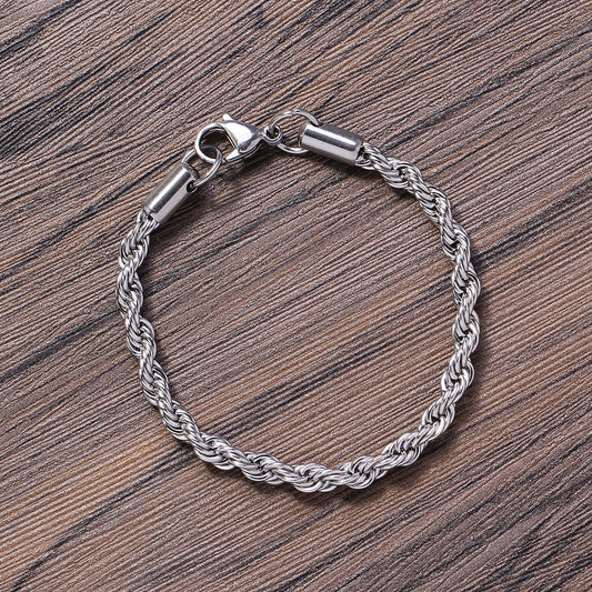 TOPGRILLZ 3/5mm Stainless Steel Rope Chain Bracelet Hip Hop Rock Fashion Jewelry Gift For Women Men