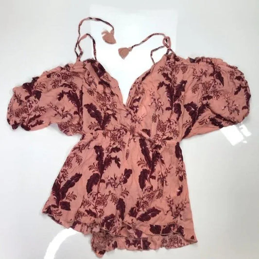 Topshop Cold Shoulder Pink Printed Playsuit Jumper Size Large. Women's Fashion