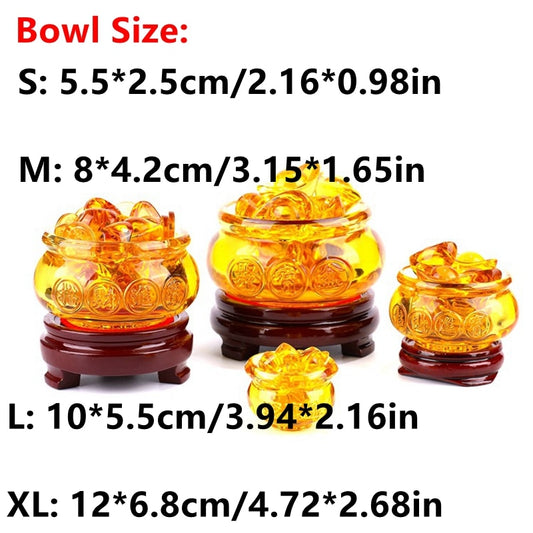 Yellow Crystal Glaze Chinese Fengshui Dragon Treasure Bowl Statue