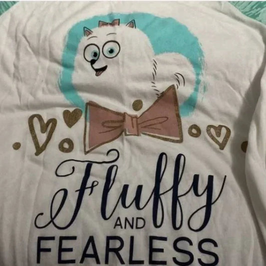 NWT Universal " Fluffy and Fearless" Raglan Short Sleeve T-Shirt. Size Small. Women's Fashion.