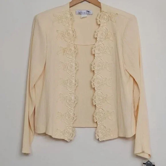 NWT Floral Embroidered Open Front Yellow Blazer Suit Size 14. Women's Fashion