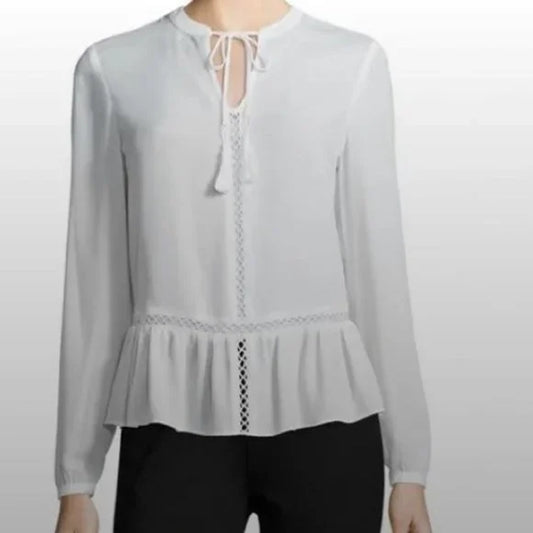 NWT a.n.a Long Sleeve Peplum White Blouse. Size Small. Women's Fashion