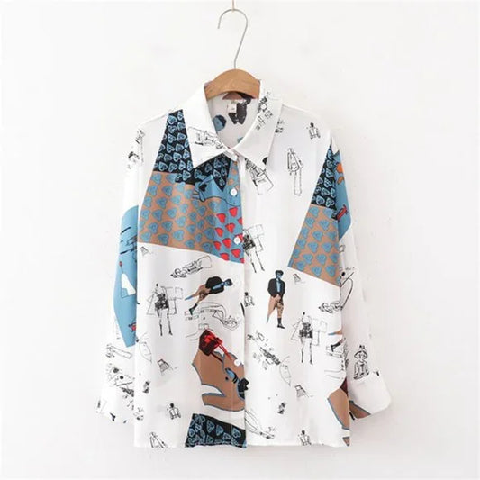New White Blue Baroque Print Runway Women's Collared Slim Blouse Top. Size Large