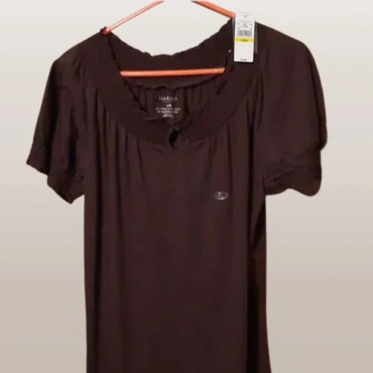 NWT Van Heusen Brown Short Sleeve Top Blouse Size Large. Women's Fashion