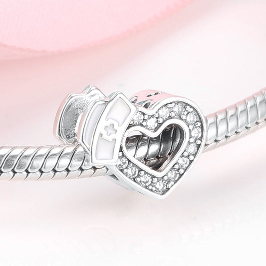 Hot 925 Sterling Silver Love Heart Hat Charm Sparkling CZ Fine Beads fit Original Pandora Bracelets Women Jewelry Making