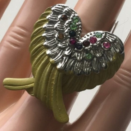 FREE with $29 Purchase! Brand new big chunky adjustable ring 💍 fashion jewelry for Women's & ladies. Yellow angel 😇 wings design silver with colorful 💎 gemstones.