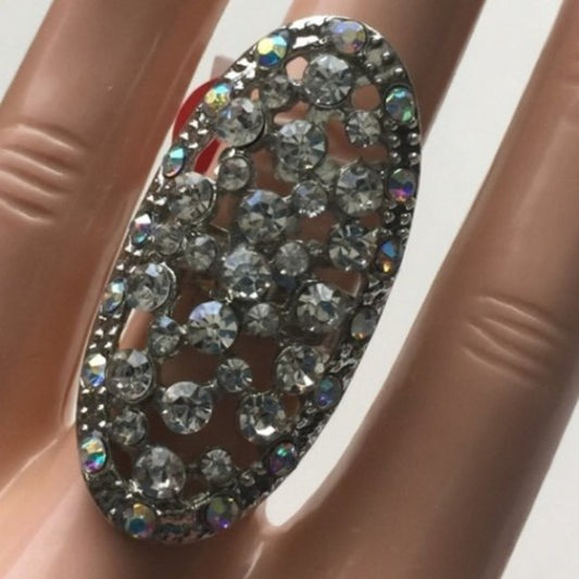 50% OFF Brand-new big chunky adjustable ring 💍 Fashion jewelry for women's. Silver oval with rhinestones.