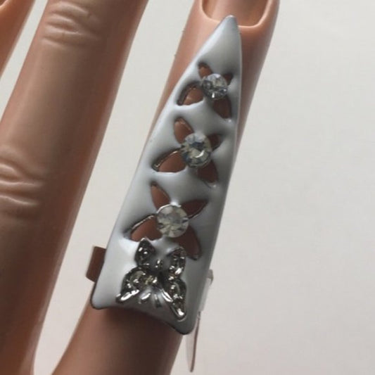 50% OFF Brand-new big chunky adjustable ring 💍 Color white w gemstones it has a butterfly design.