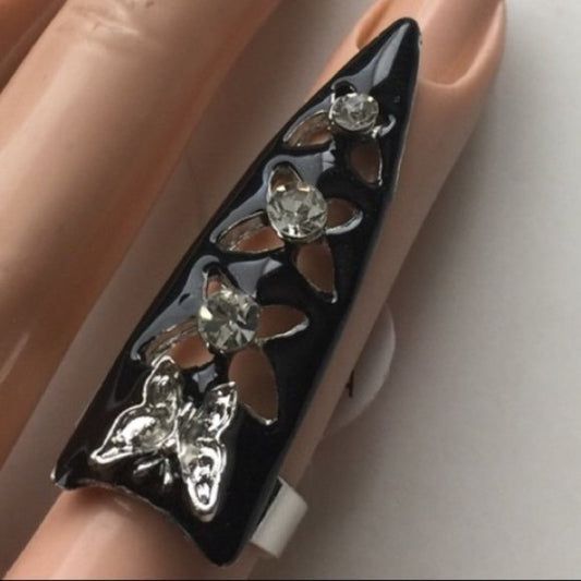 50% OFF Brand-new big chunky adjustable ring 💍 Fashion jewelry for women's & ladies. Color black with butterfly design and rhinestones.