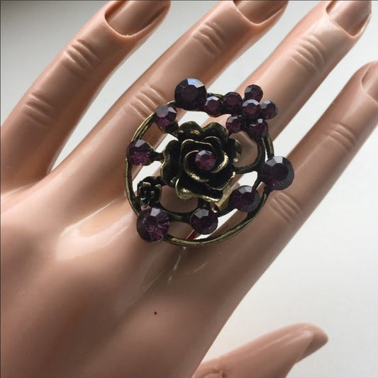 50% OFF Brand-new big chunky adjustable statement ring 💍 woman's fashion jewelry. 💎 pretty purple gemstone rose 🌹 flower 🌺 design