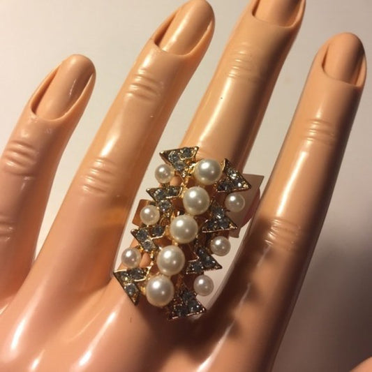 50% OFF Brand-new adjustable ring with white pearls and gold plated. Women's Ladies Fashion Jewelry