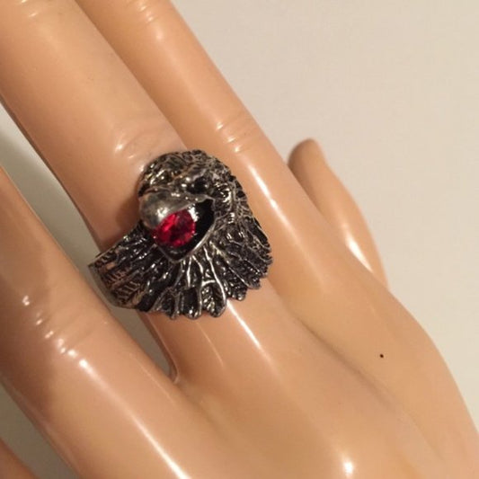 50% OFF Brand-new adjustable ring 💍 big chunky eagle head design with red gemstone fashion jewelry for ladies and women's.