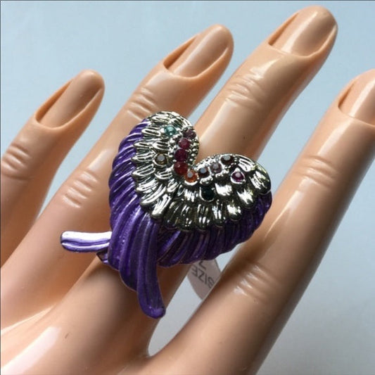 50% OFF BRAND NEW BIG CHUNKY STATEMENT ADJUSTABLE RING💍. Fashion Jewelry Women's Beautiful purple Angel 😇 Wing design with gemstones 💎