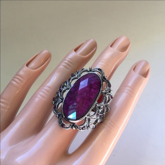 Brand-new big chunky adjustable statement ring 💍 fashion jewelry. 💎 this has a beautiful purple gemstone oval design in the middle.