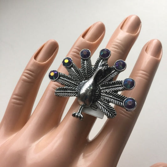 Brand-new big chunky adjustable ring 💍 for woman & Ladies. fashion jewelry. 💎 pretty peacock design with rhinestones.