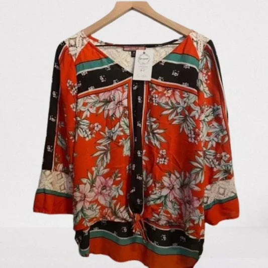 NWT Juniors Francesca's long sleeve blouse size XL floral designs. Stretchable