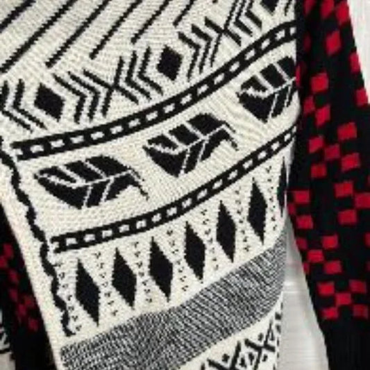 NWOT Francescas Red White Printed Long Sleeve Cardigan Sweater Medium Women's