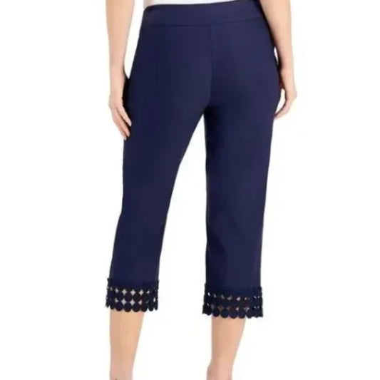 NWT JM Collection Women's Blue Tummy Control Lace-Trim Pull On XL Capri Pants