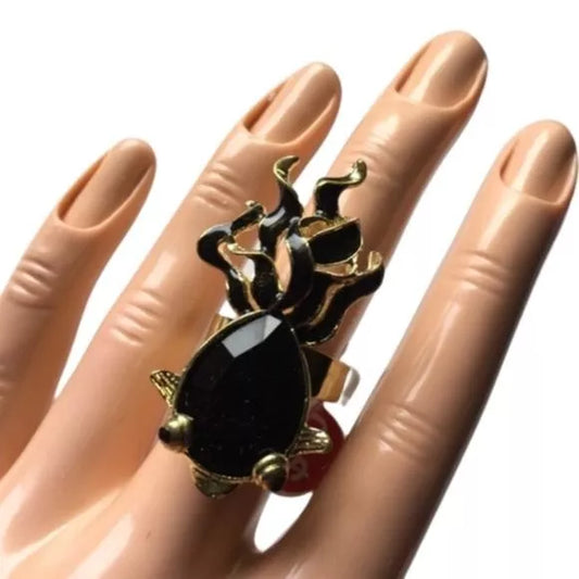 NEW Adjustable Chunky Ring Black Gem stones. Women's Fashion Accessories.