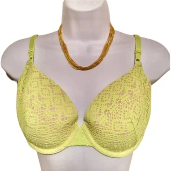 NWOT Brand New very pretty VS Victoria's Secret lace lined Demi/Demi busty double yellow/lime bra. Size 34DD. This was just sitting in my closet. Women's Ladies Fashion.