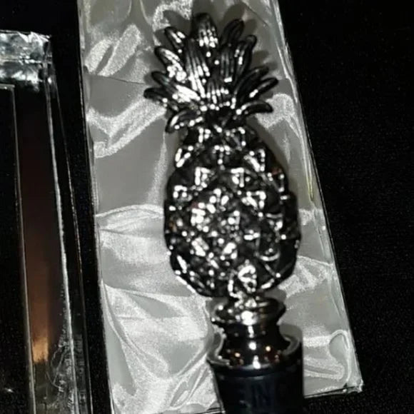 NIB SILVER METAL WINE STOPPER. Pop the cork and replace it with this silver pineapple 🍍! The pineapple is somewhat flat. See pic two.