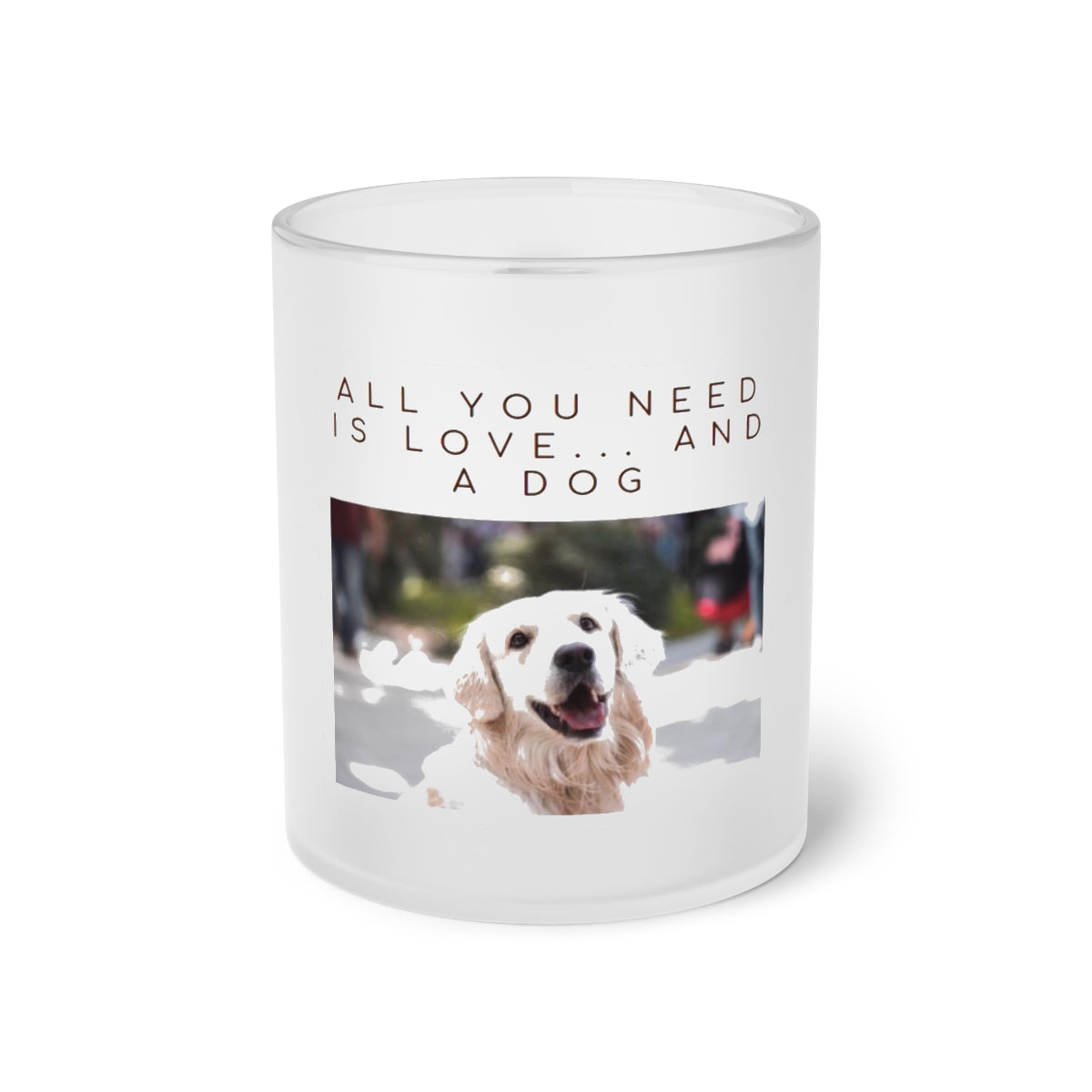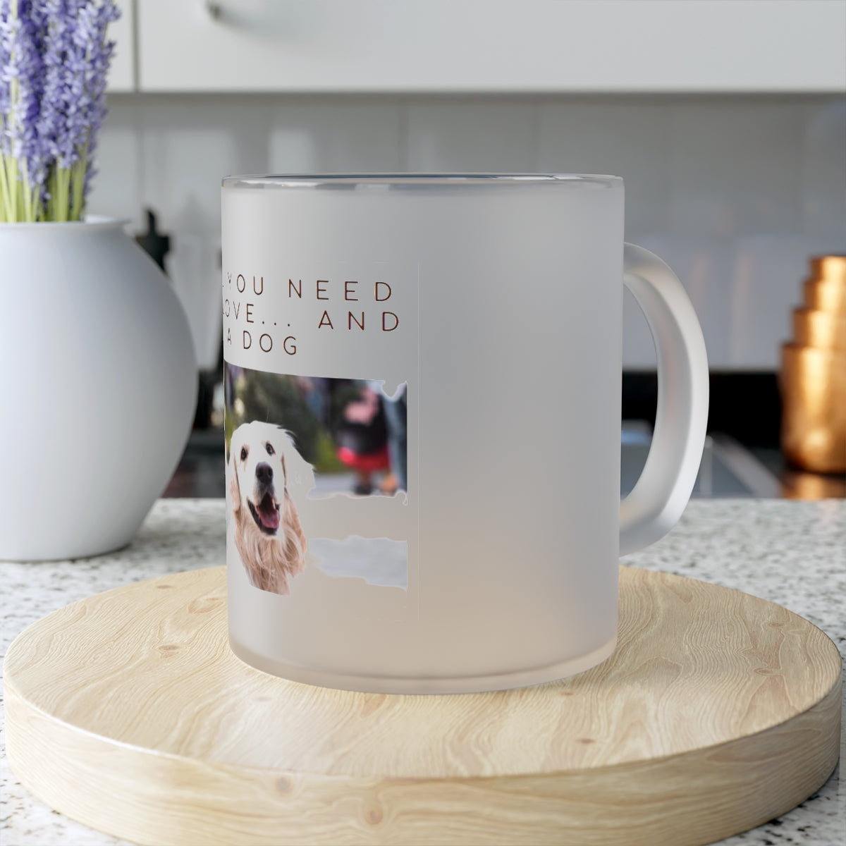 "All You Need is a Love and a Dog" Frosted Glass Mug Birthday Gift Holiday Gifts Pets Fur Momma Dog Lover
