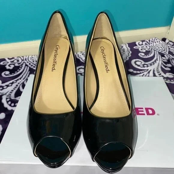 New in-box shiny pumps with a 3in the heel. They have a few small scuffs on the side from moving around in storage.
