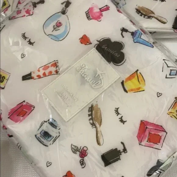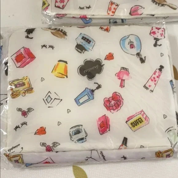 Brand New Portable Travel Hook Cosmetic Beauty Make-up bag storage organizer convenient. Color white with toiletries design. Women's Ladies Fashion.