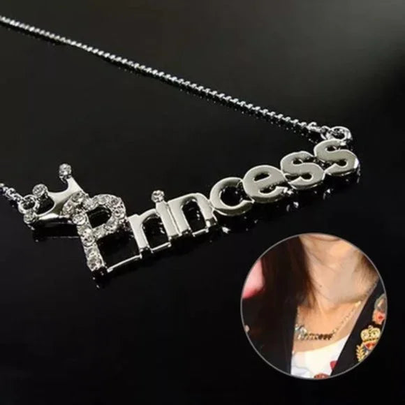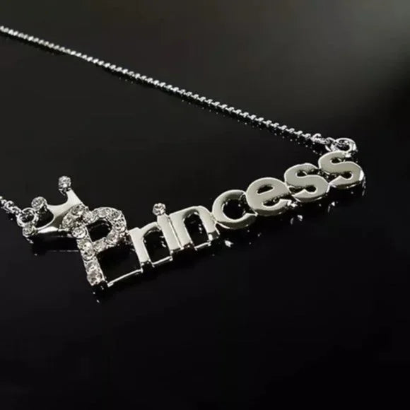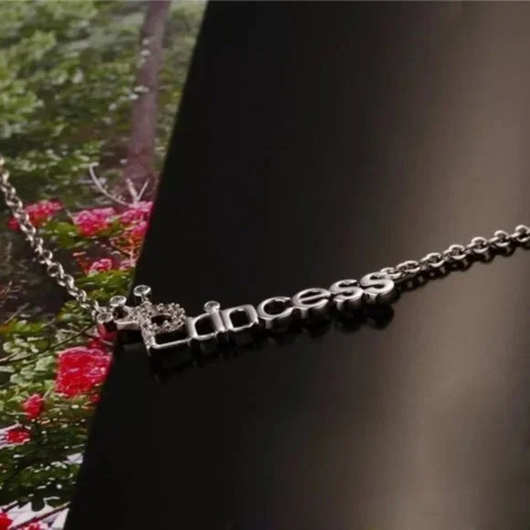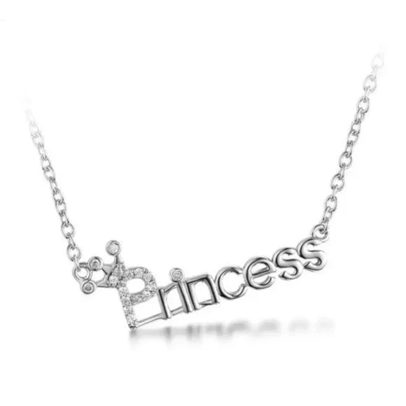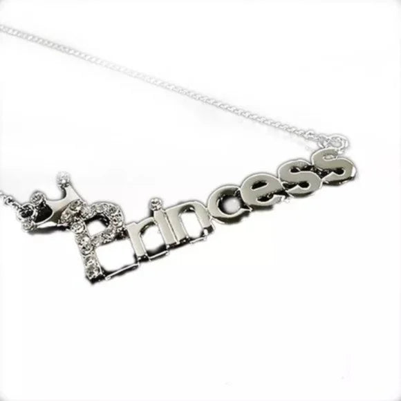 Brand-new silver letters princess pendant with crown fashion jewelry chain necklace