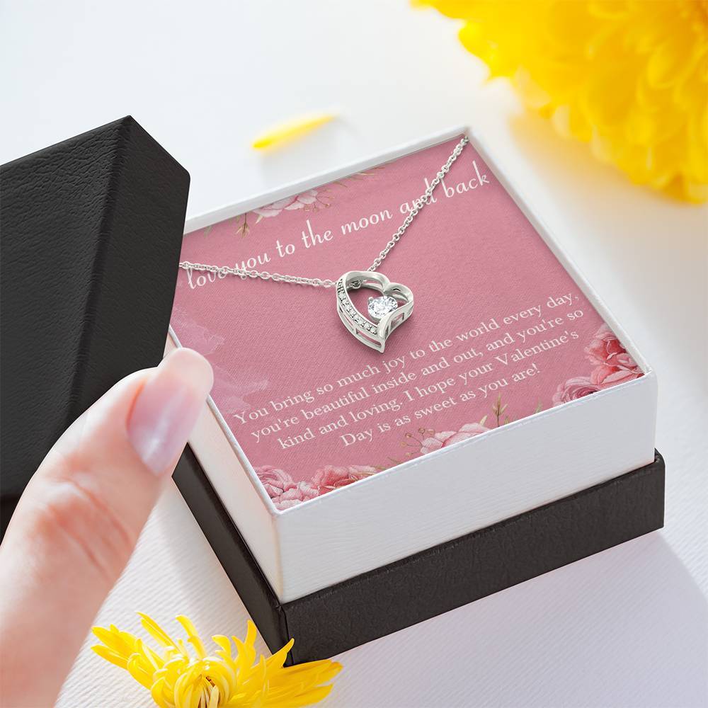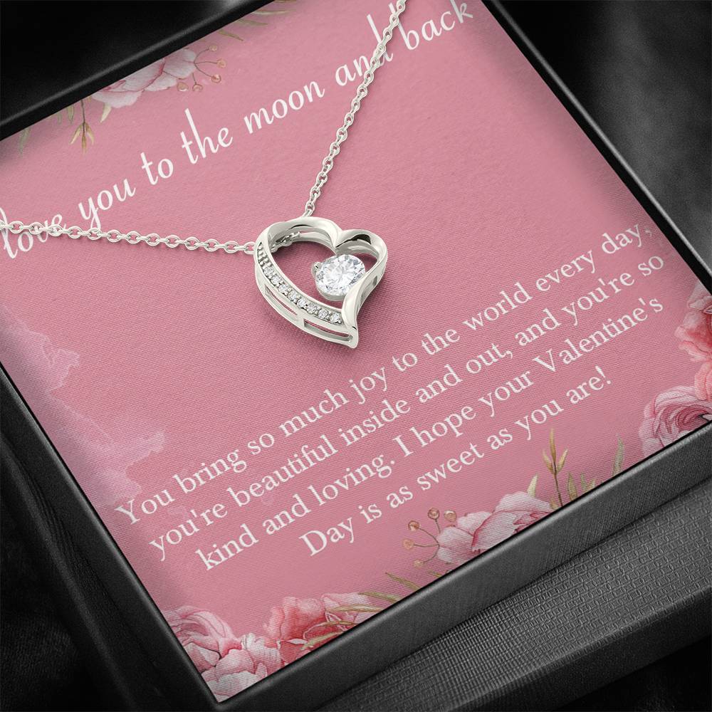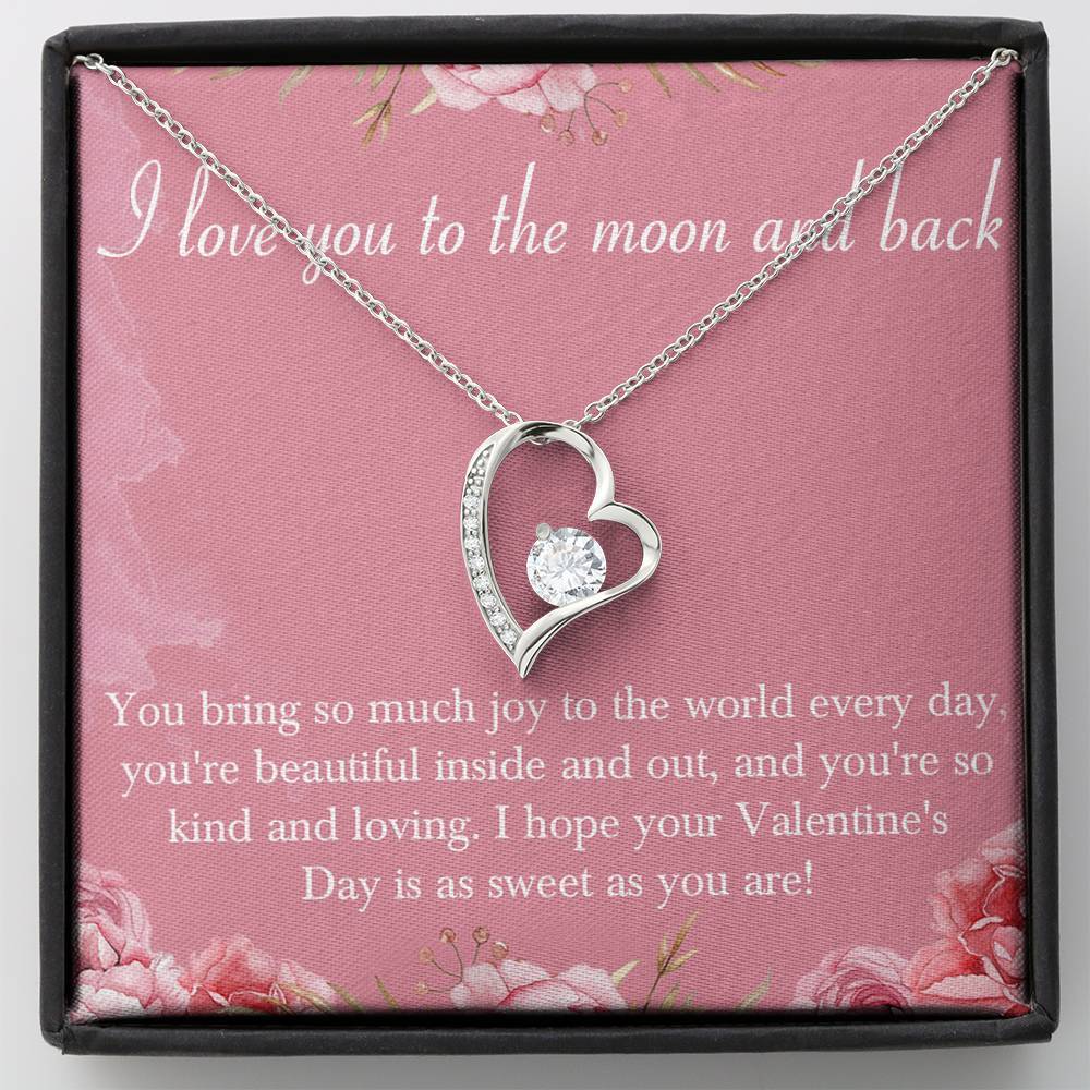 This exquisite "I Love You To The Moon and Back" 14K White Gold Plated Heart Pendant Necklace is a must-have for anyone who loves to add a touch of sophistication to their outfit. It adds a unique touch, making it perfect for any occasion. The necklace is ideal for anyone looking for a piece of fashion jewelry that is both stylish and elegant.