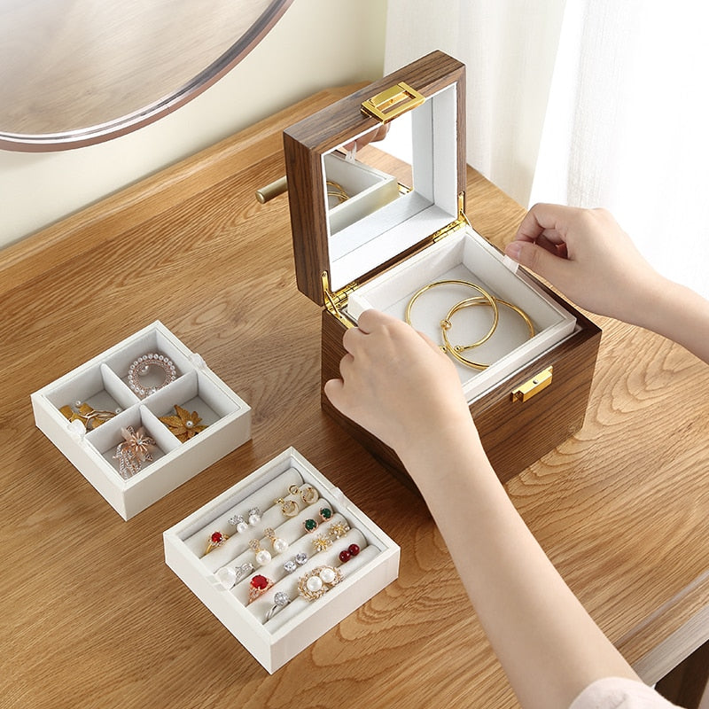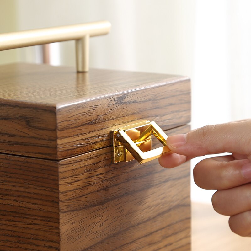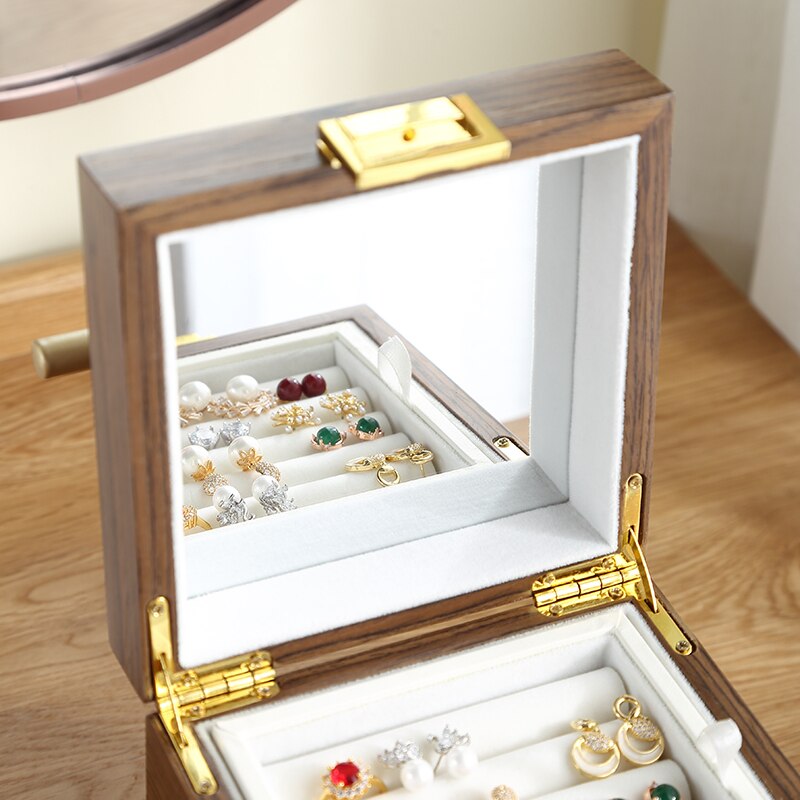 Material: Wooden + Velvet Lining + HD Mirror + Lock