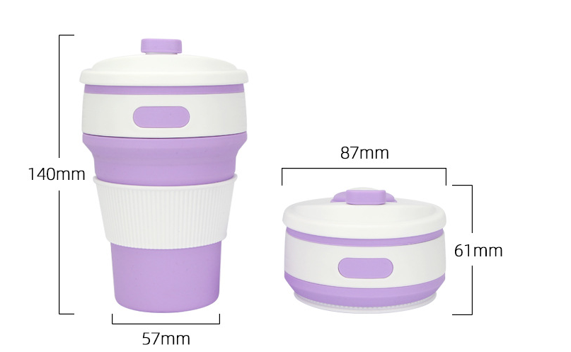 Looking for an easy-to-carry and practical cup for your next outdoor adventure or business trip? Check out our Collapsible Silicone Cup! This food grade safety silicone cup is perfect for those on the go. Its compact design makes it easy to slip into a pocket or bag, and it expands to hold 300-350ml of liquid. Our designer specially designed an anti-hot handle and leak-proof cover, making this the perfect cup for coffee, tea, or any other beverage. So don't hesitate, grab a Collapsible Silicone Cup today!