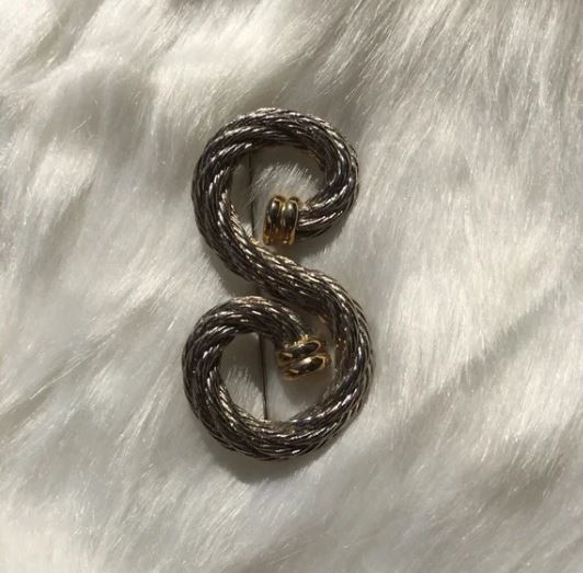 "S” Design Metal Braided Silver Plated Brooch Pin