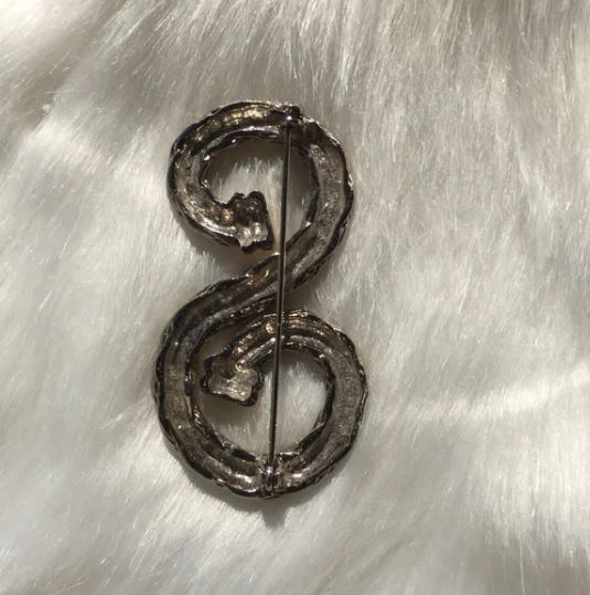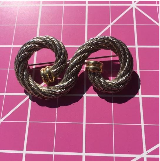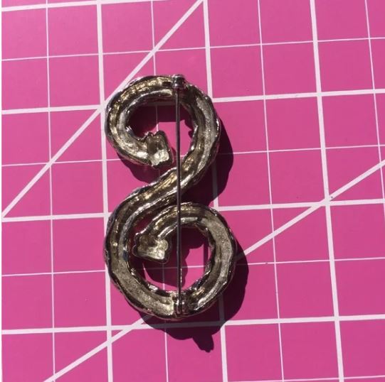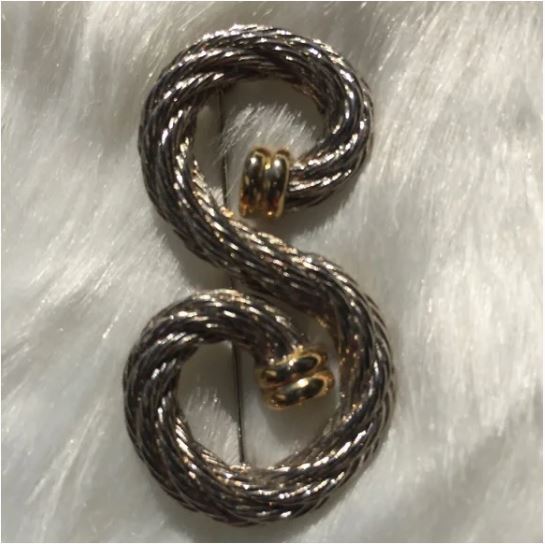 Elegant “S” design braided metal silver plated brooch pin vintage style. Women's Ladies Fashion Jewelry.