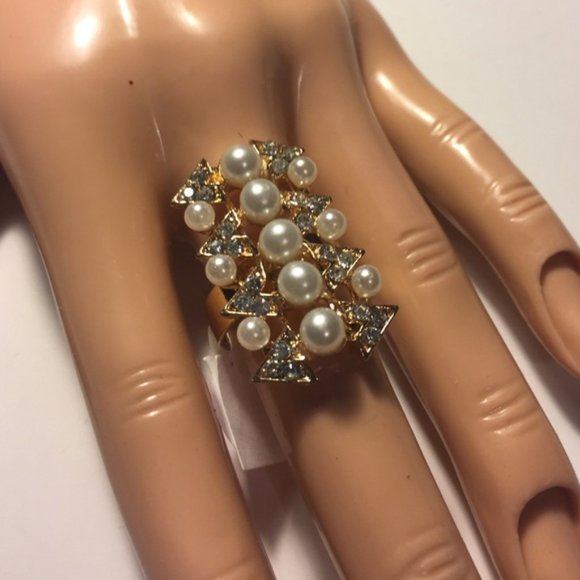 Brand-new adjustable ring with white pearls and gold plated. Women's Ladies Fashion Jewelry