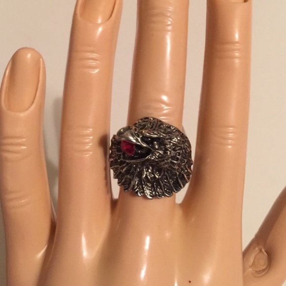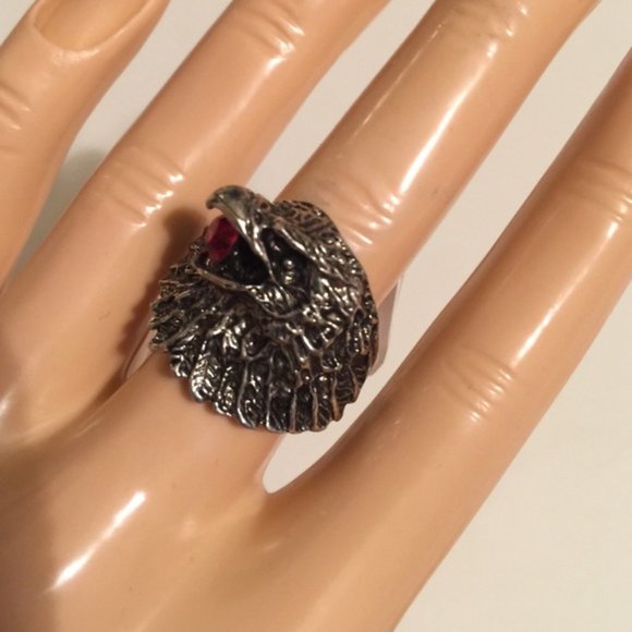 Brand-new adjustable ring π big chunky eagle head design with red gemstone fashion jewelry for ladies and women.