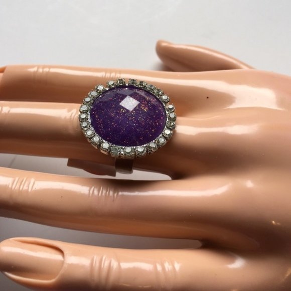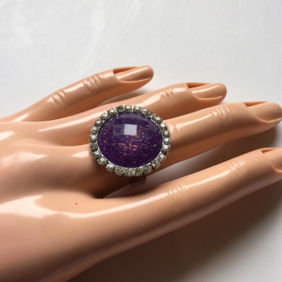 Adjustable ring chunky fashion jewelry round pretty purple gemstone. Women's Ladies' Fashion Jewelry