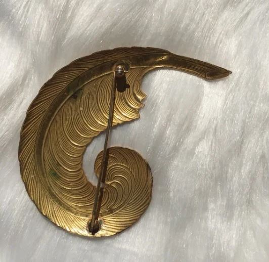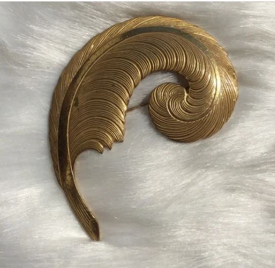 Pretty Gold Plated Swirl Leaf 🍃 Brooch Pin Vintage Style Women's Fashion