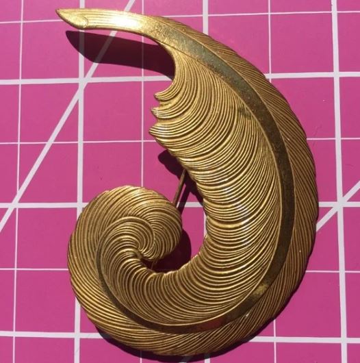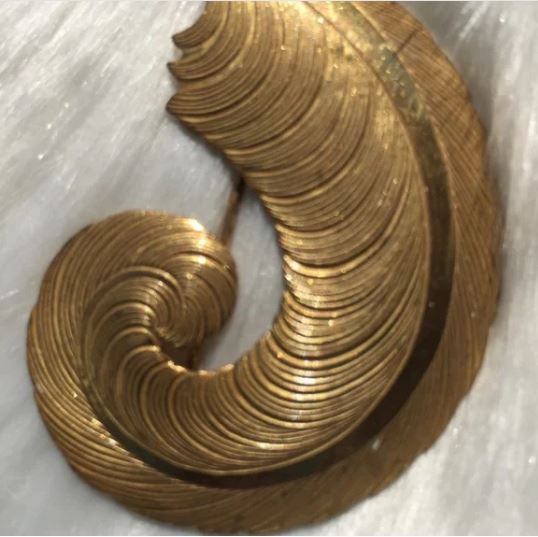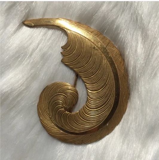 Elegant gold plated swirl leaf design brooch pin vintage style. Very pretty. Women's Ladies Fashion Jewelry.