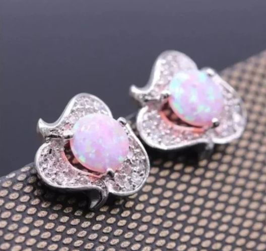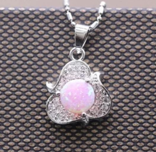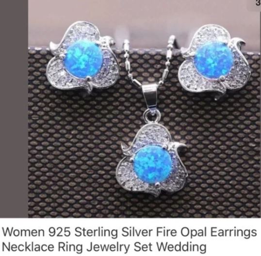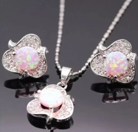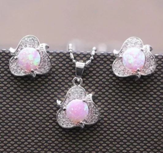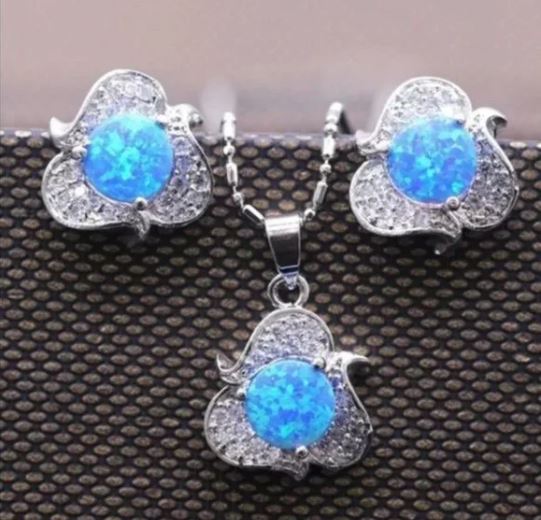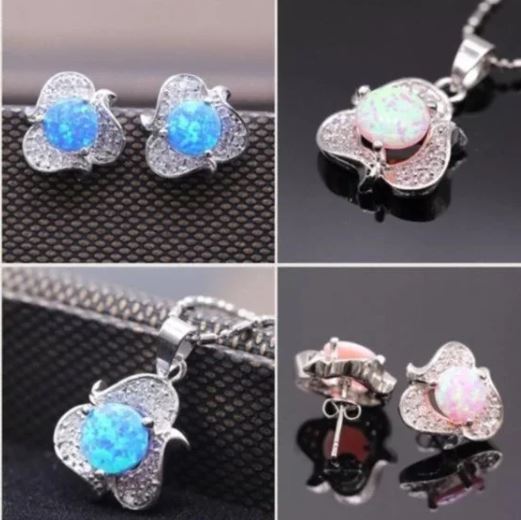 NWT Brand New fire 🔥 opal fashion jewelry set necklace earrings. Choose blue or pink.