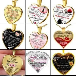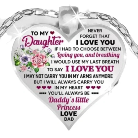 "To My Daughter, My Little Girl Forever" Pendant Necklace. Fashion Jewelry. Heart Pendant Necklaces Family Gifts For My Daughter From Love Dad Mom Birthday Gift Jewelry