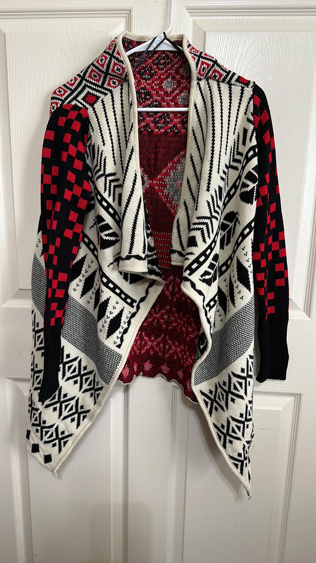 50% OFF RED White Longsleeve Cardigan Sweater Women's Ladies Fashion