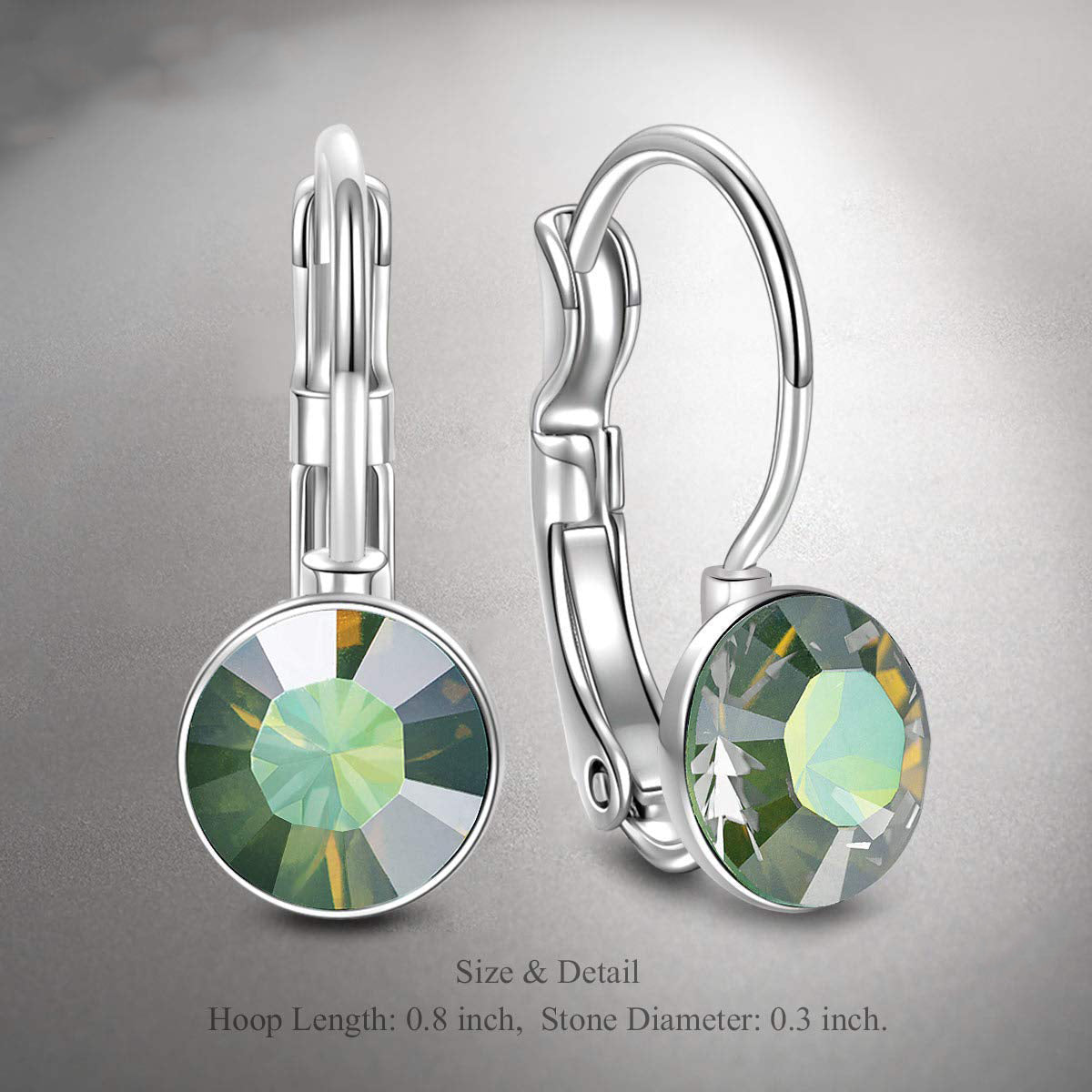 Creation Method: Lab Created Guaranteed to Retain its Color and Shine Emerald Mini Baby Leverback 0.8" Earring in 18K White Gold Plated