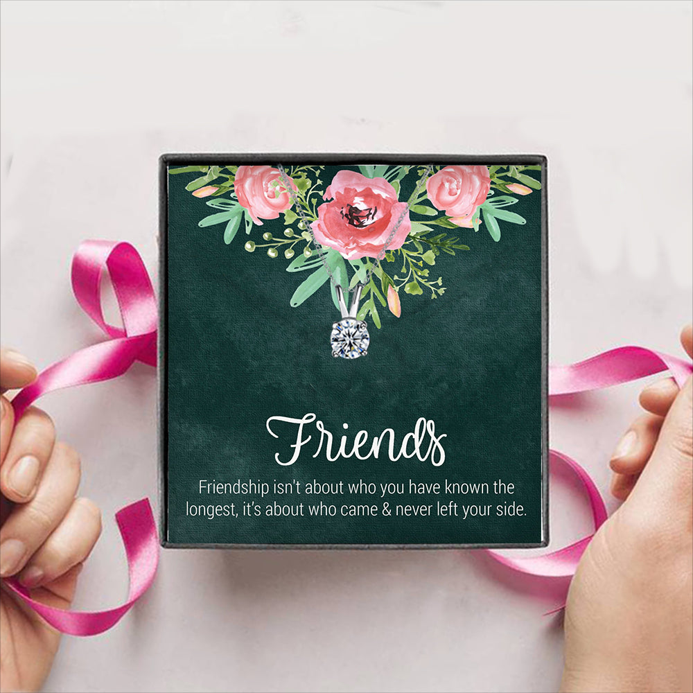 This exquisite "Friends" Gift Box Pendant Necklace is a must-have for anyone who loves to add a touch of sophistication to their outfit. It adds a unique touch, making it perfect for any occasion. The necklace is ideal for anyone looking for a piece of fashion jewelry that is both stylish and elegant.