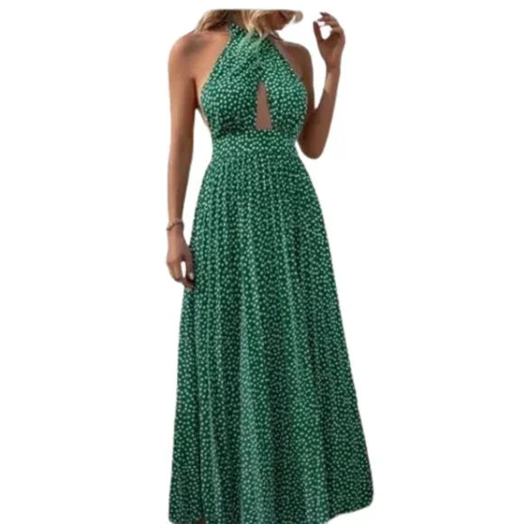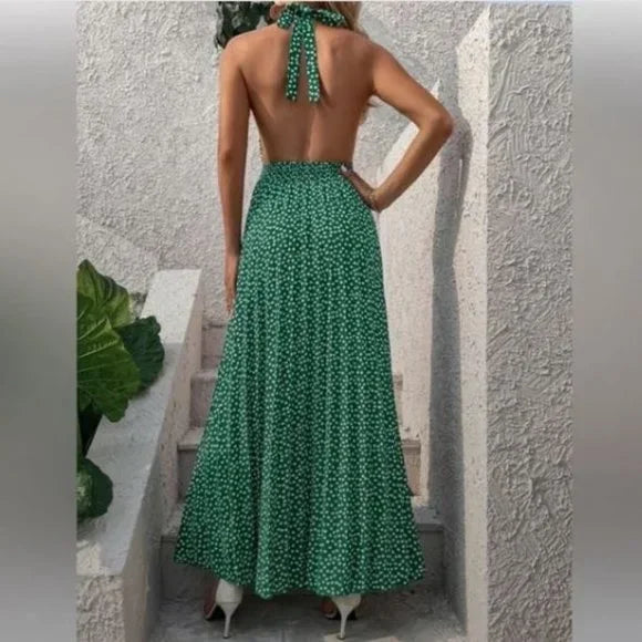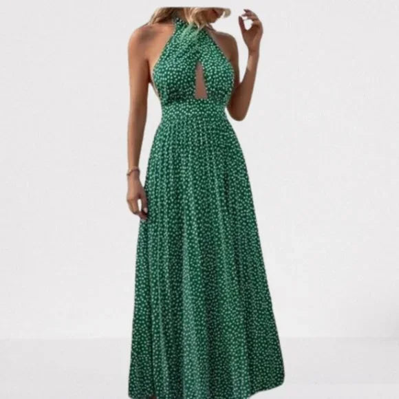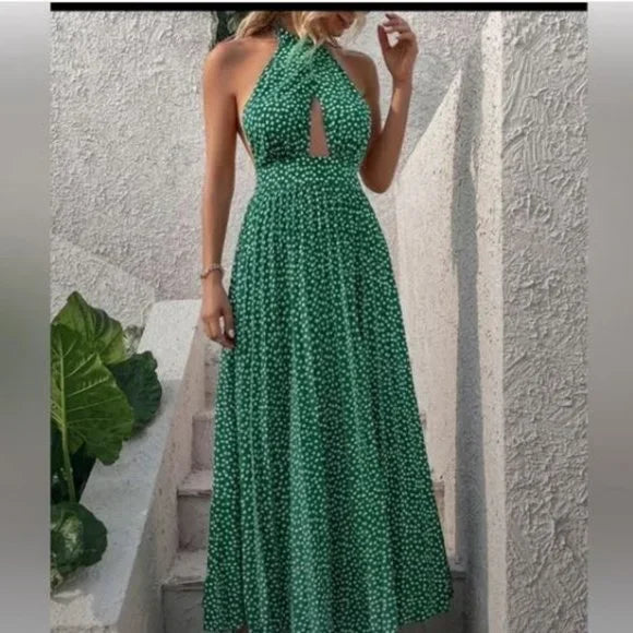 Green Halter Floral Halter Maxi Dress from Shein. Size Large