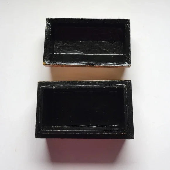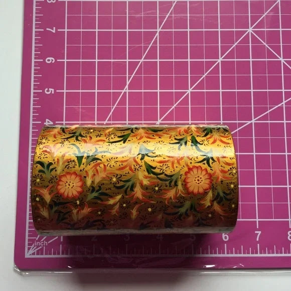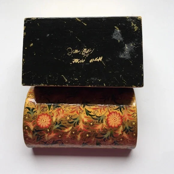 Lacquered hand-painted wooden box India Kashmir trinket jewelry box floral.